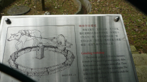 鑿有溝糟的花崗岩拼合而成,中間豎立方形石柱一條,另發現圓形石磙一個,直徑 85厘米;推測是利用畜力推動碾磨,把瓷土碾成粉末的一種工具。