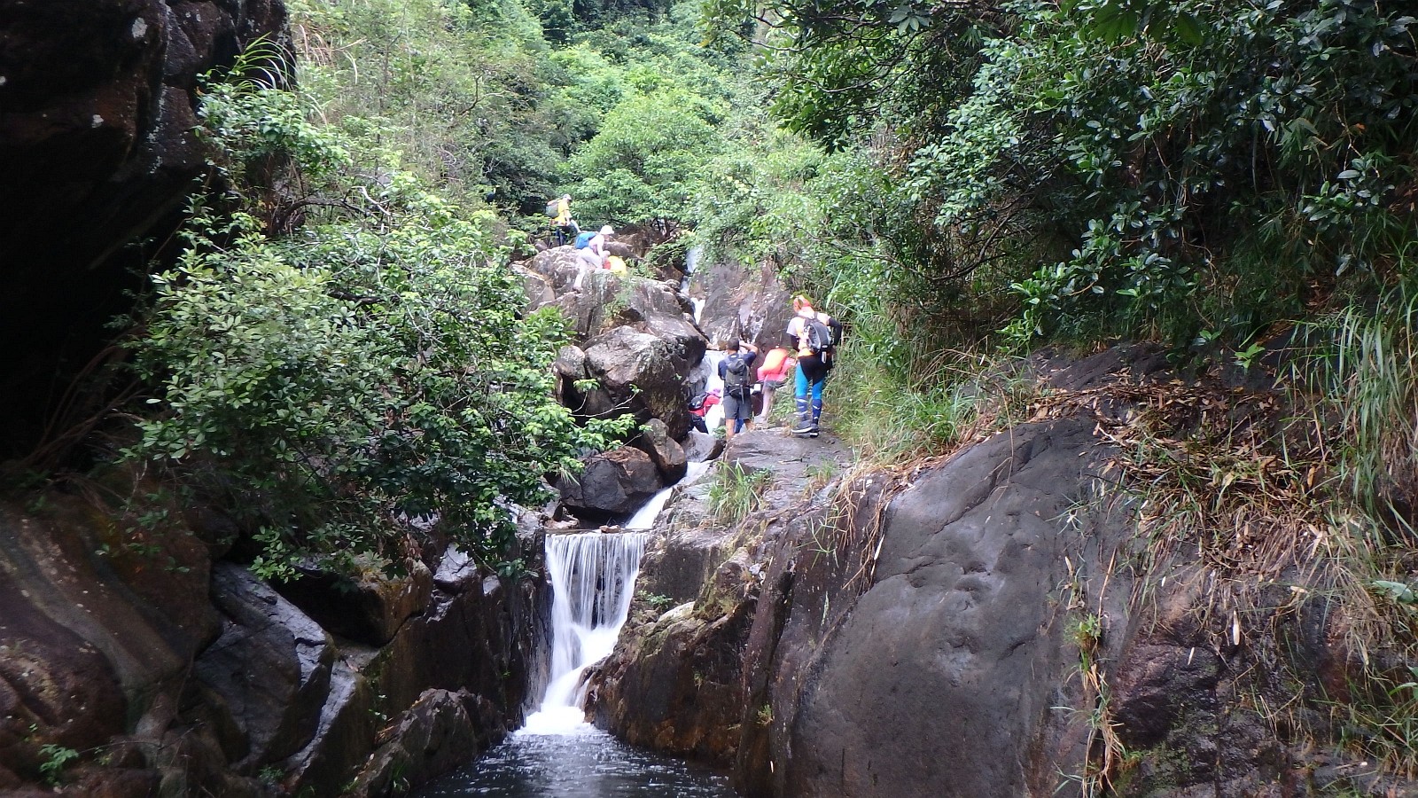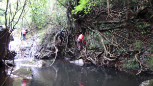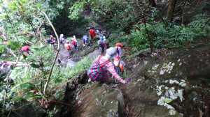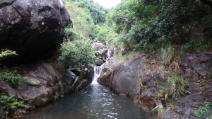 8號風球下,火炭站B出口外小公園集合,溯坳背灣坑、落四城石澗、續轉落草城石澗,出城門菠蘿霸散隊!水源開爐大休!