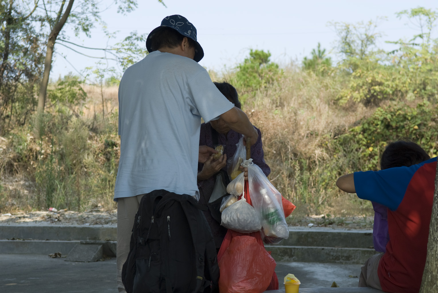 啊婆想賣 蛋 給 大李生, 大李生,話你嘅野要錢, 我畀你唔駛錢, 送番 餅同 果凍佢. 跟住 啊 婆 送 蛋佢. 真客氣.